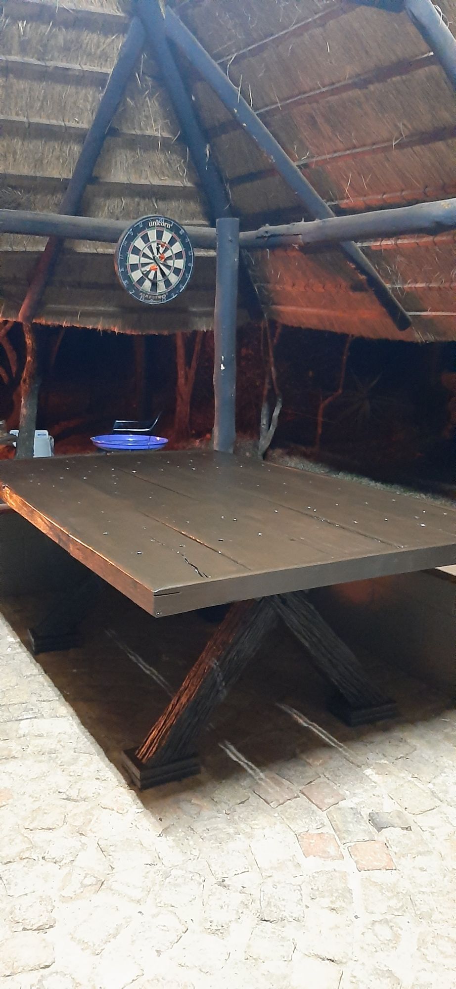 The lapa area has two large wooden tables and seating for up to 20x people. There is also an ice machine and indoor built-in braai.