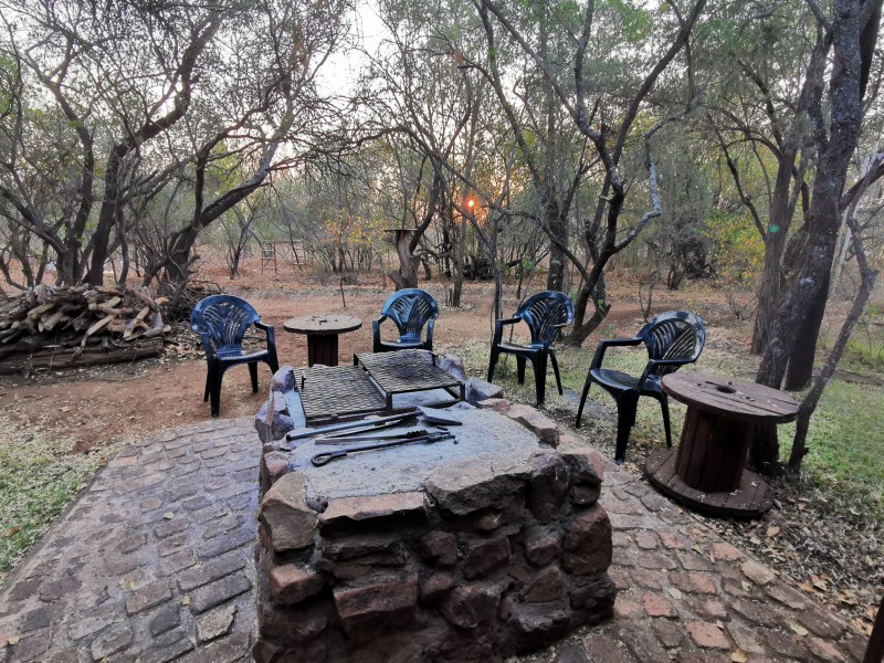 Adjacent to the lapa there is a “boma” fire area for guests to utilize. The fire area includes two large braai grids as well as various pans and skillets for cooking on the fire.
